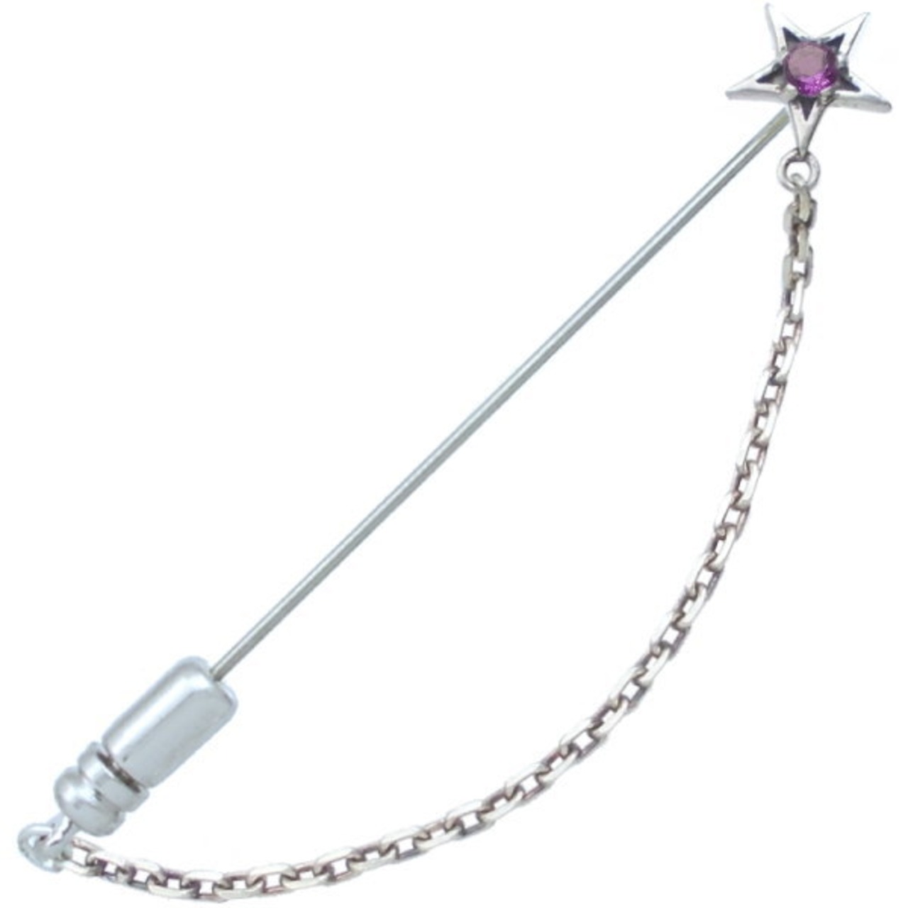 (2月)アメジスト ブラック タイニー スター チェーン シルバーラペルピン 誕生石*BK-1227