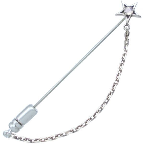 小さな星の真ん中にこだわりの5本爪で誕生石をセッティングしたエレガントなチェーン付ラペルピン。