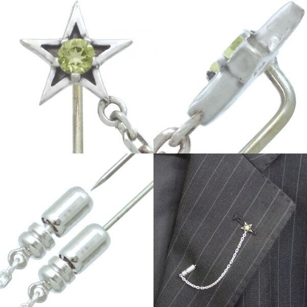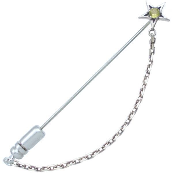 (8月)ペリドット ブラック タイニー スター チェーン シルバーラペルピン 誕生石*BK-1227