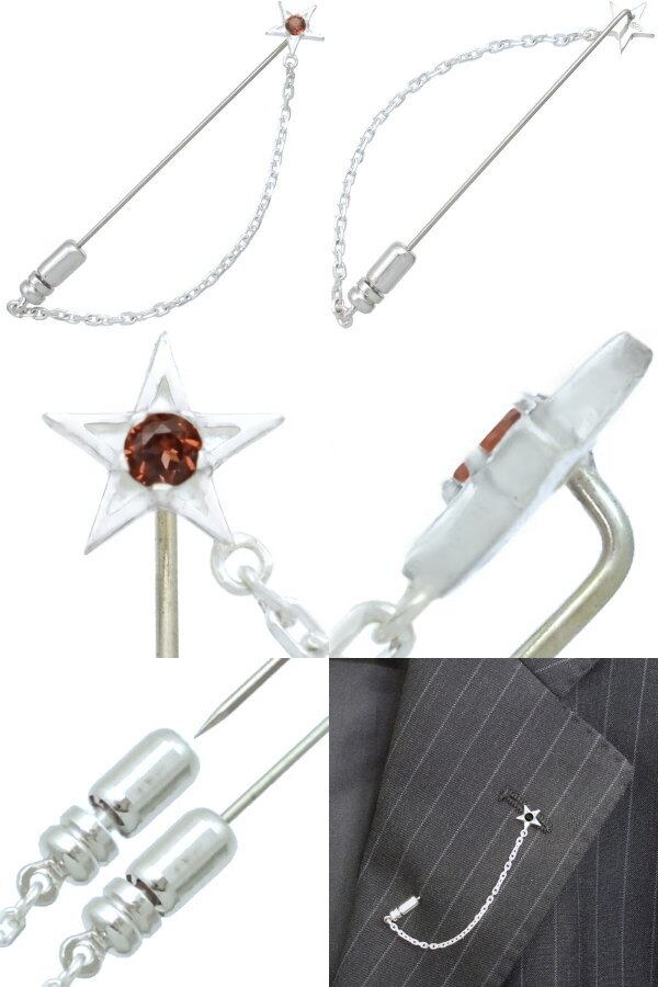 (1月)ガーネット ホワイト タイニー スター チェーン シルバーラペルピン 誕生石*BK-1228