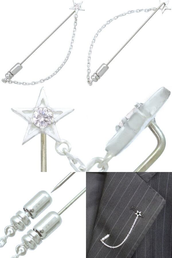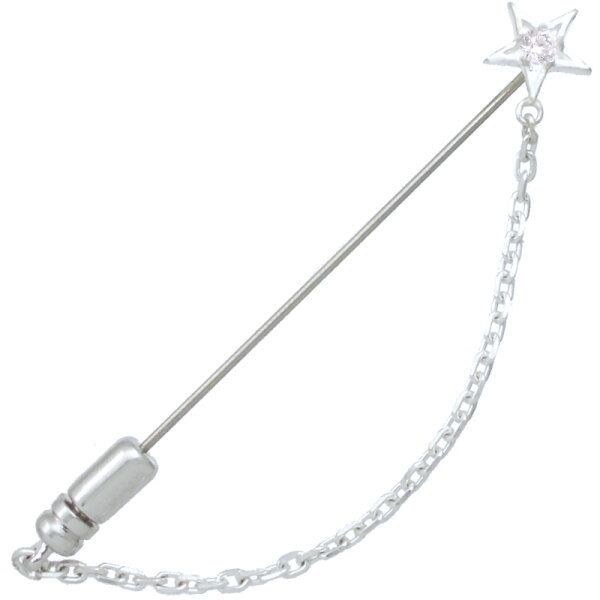 (4月)ジルコニア ホワイト タイニー スター チェーン シルバーラペルピン 誕生石*BK-1228
