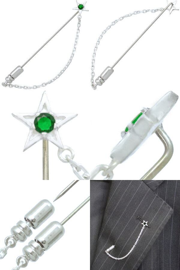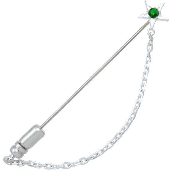 (5月)エメラルドグラス ホワイト タイニー スター チェーン シルバーラペルピン 誕生石*BK-1228