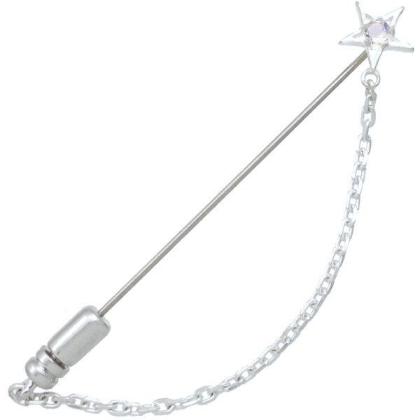小さな星の真ん中にこだわりの5本爪で誕生石をセッティングしたエレガントなチェーン付ラペルピン。