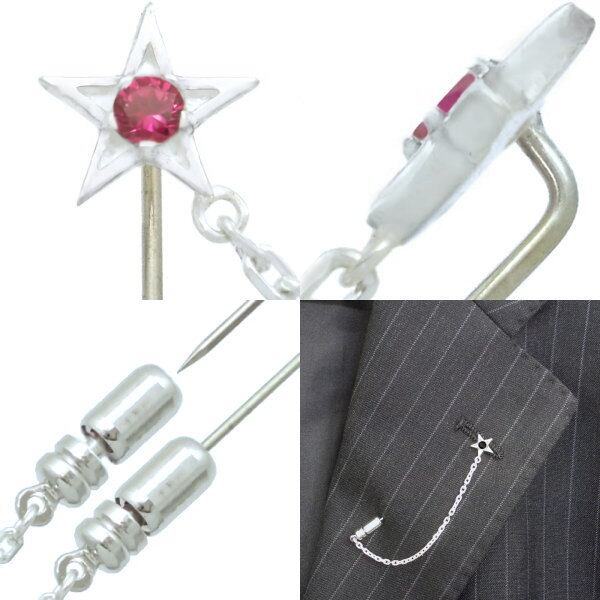 小さな星の真ん中にこだわりの5本爪で誕生石をセッティングしたエレガントなチェーン付ラペルピン。