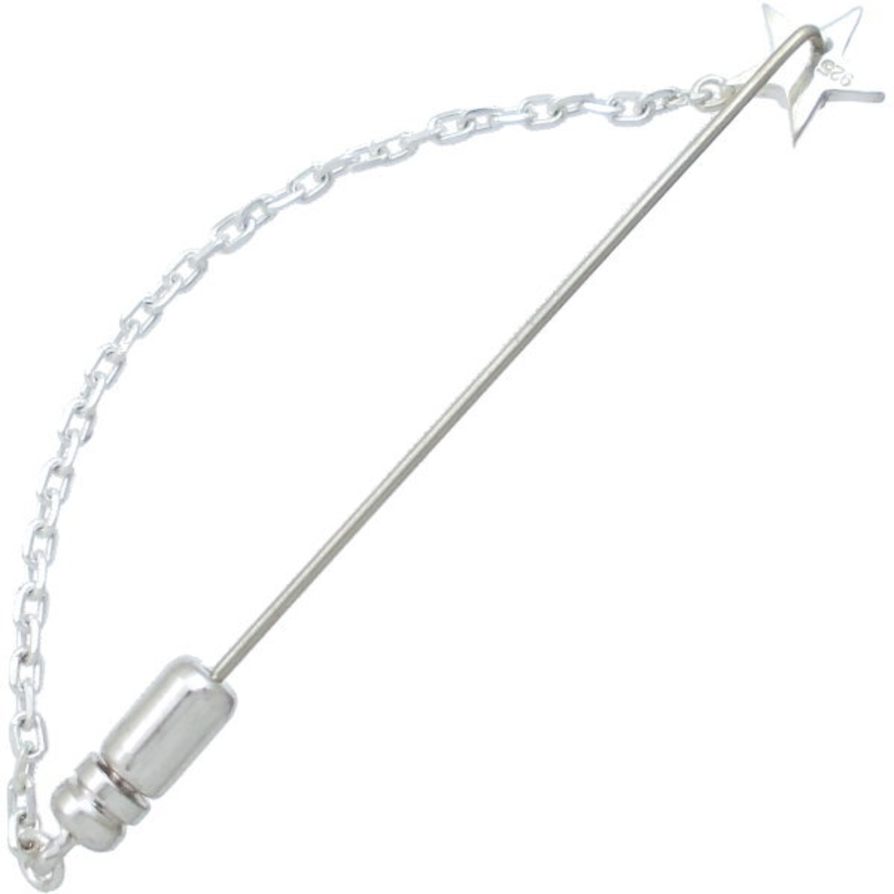 小さな星の真ん中にこだわりの5本爪で誕生石をセッティングしたエレガントなチェーン付ラペルピン。