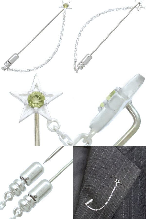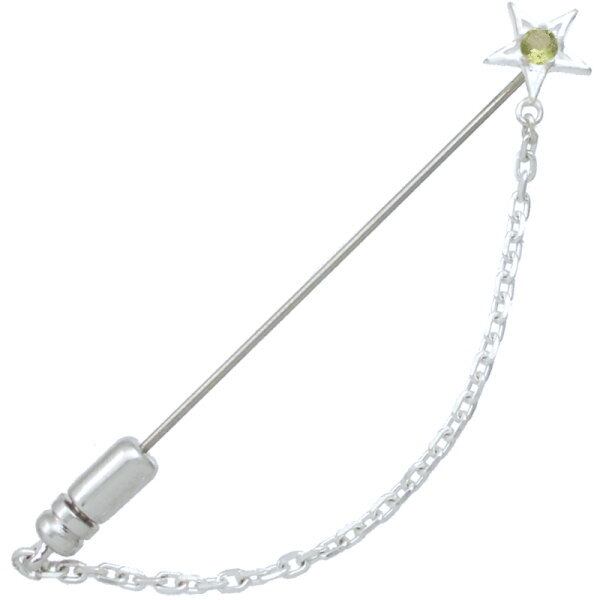 (8月)ペリドット ホワイト タイニー スター チェーン シルバーラペルピン 誕生石*BK-1228