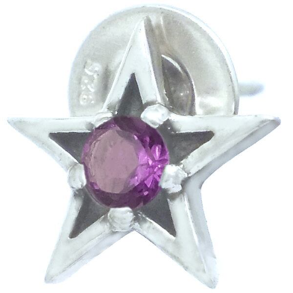 (2月)アメジスト ブラック タイニー スター シルバー ピアス 誕生石*BE-1039