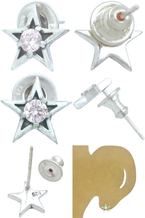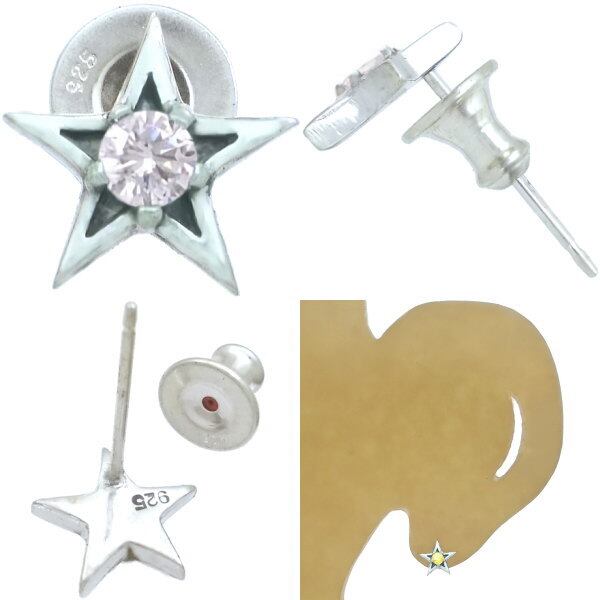 (4月)ジルコニア ブラック タイニー スター シルバー ピアス 誕生石*BE-1039