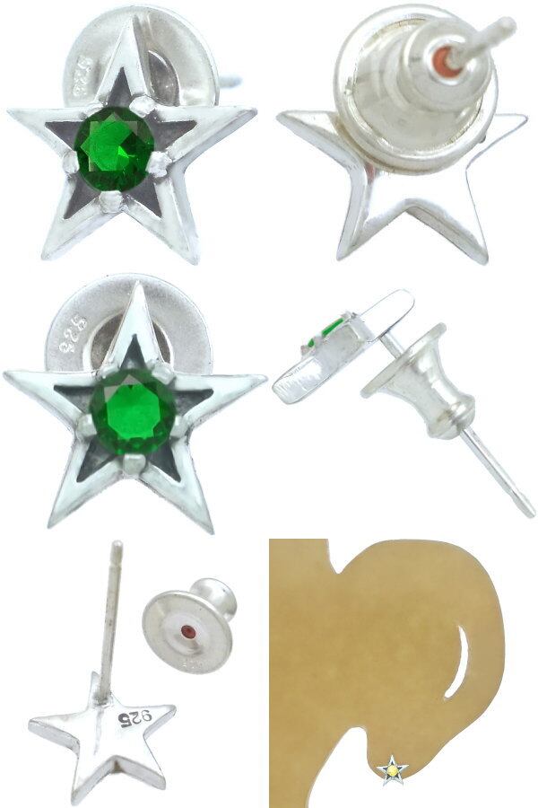 (5月)エメラルドグラス ブラック タイニー スター シルバー ピアス 誕生石*BE-1039