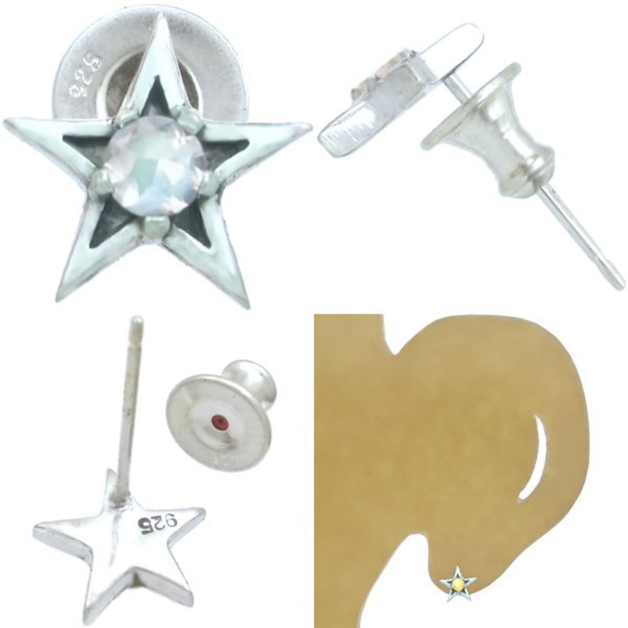 (6月)ブルームーンストーン ブラック タイニー スター シルバー ピアス 誕生石*BE-1039