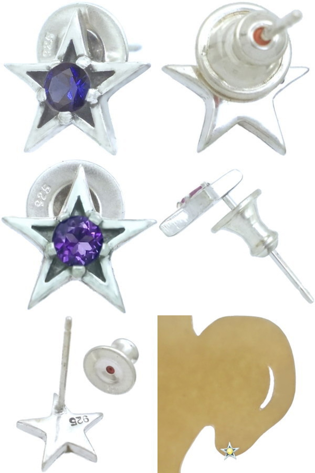 小さな星の真ん中にこだわりの5本爪で誕生石をセッティングしたピアス。適度な厚みと立体感でしっかり存在感をアピール。