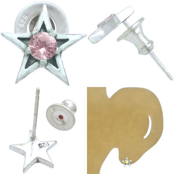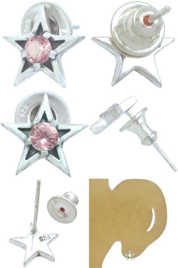 (10月)ピンクトルマリン ブラック タイニー スター シルバー ピアス 誕生石*BE-1039