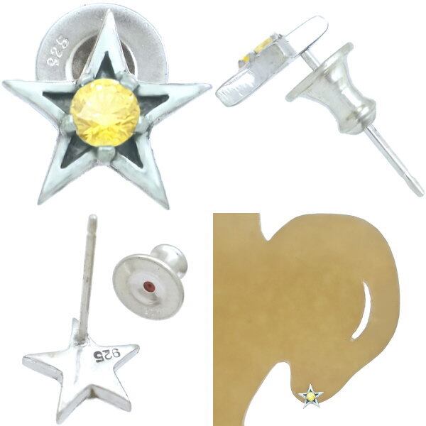 イエローC Z ブラック タイニー スター シルバー ピアス△キュービックジルコニア使用*BE-1039