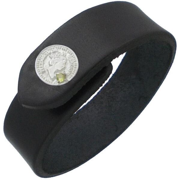 (8月)ペリドット ホワイト エリザベス コインブラックレザー ブレスレット 誕生石*BB-1034