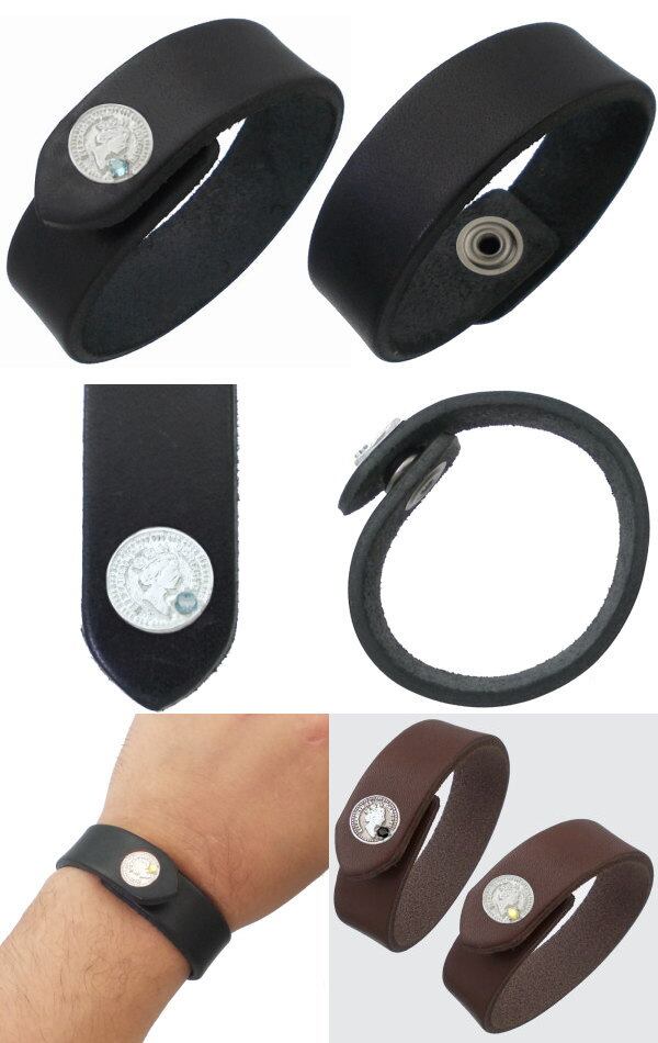 ★エリザベス女王のシルエットの小さめコインモチーフのサドルレザーブレス。