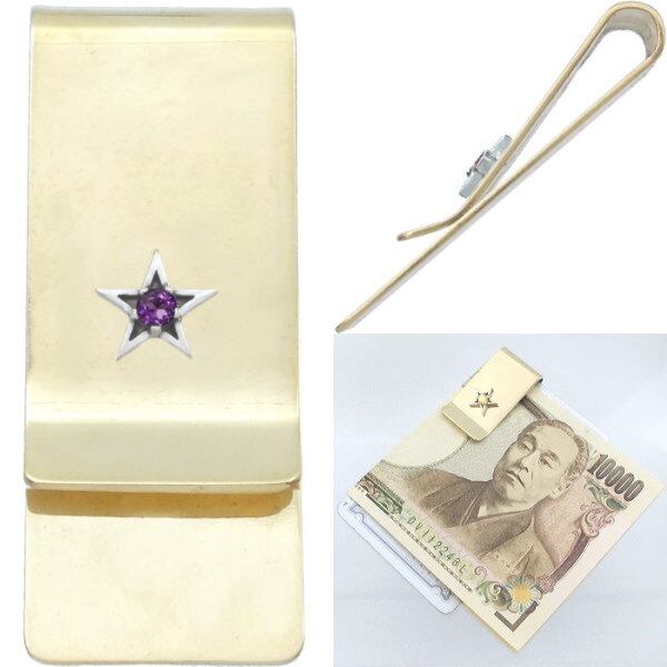 (2月)アメジスト ブラック タイニー スター スリム ブラスマネークリップ 誕生石*BM-1043