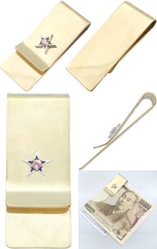 (10月)ピンクトルマリン ブラック タイニー スター スリム ブラスマネークリップ 誕生石*BM-1043