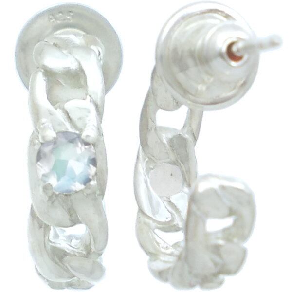 (6月)ブルームーンストーン ホワイト キヘイ シルバーピアス 誕生石*SE-11