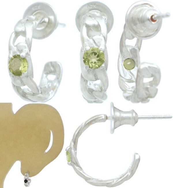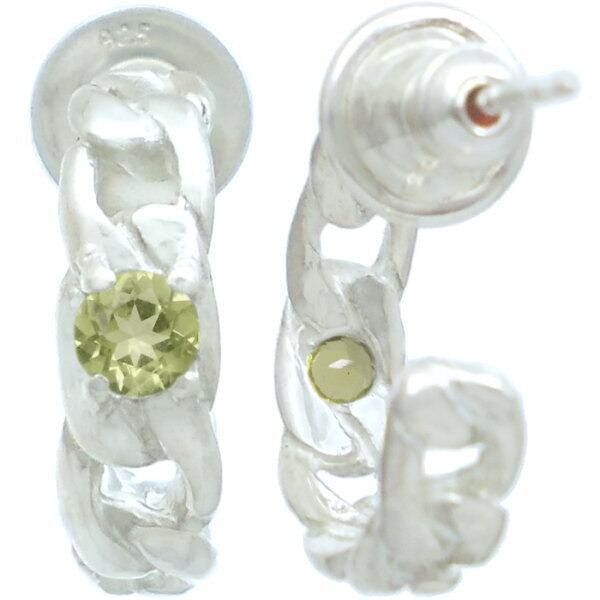 (8月)ペリドット ホワイト キヘイ シルバーピアス 誕生石*SE-11