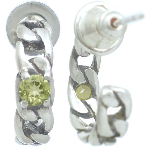 (8月)ペリドット ブラック キヘイ シルバーピアス 誕生石*SE-12
