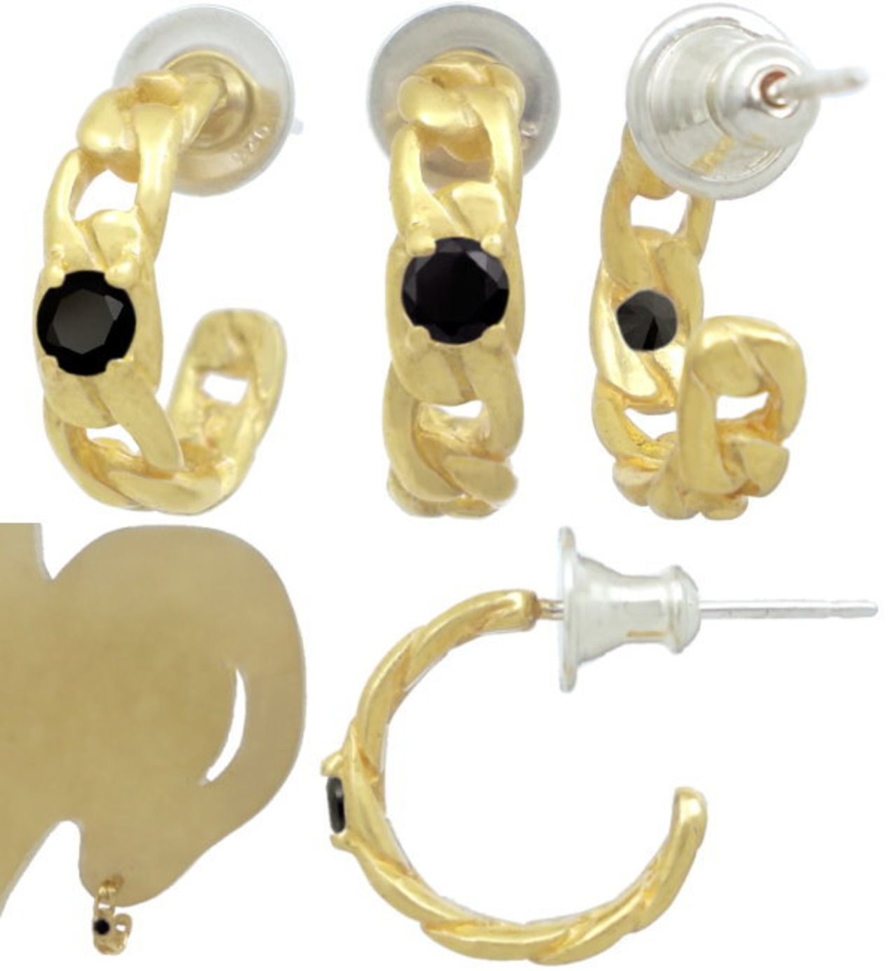 ブラックCZ ゴールドコート キヘイ シルバーピアス キュービックジルコニア使用*SE-13