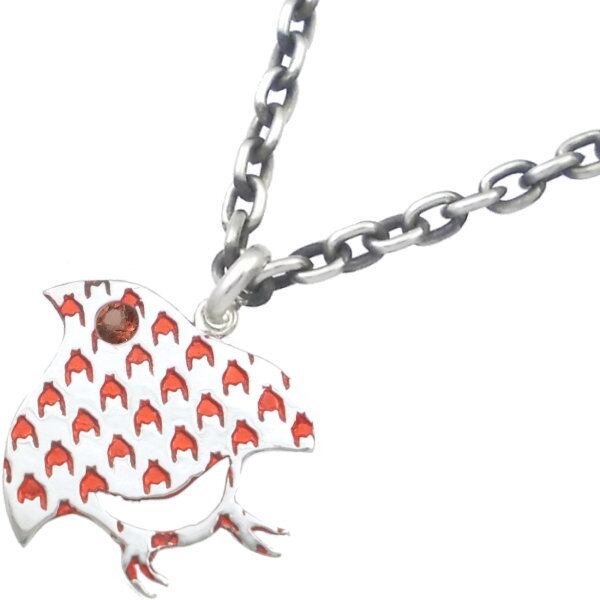 和風の千鳥柄の中にセラミックレッドの千鳥格子を掛け合わせたペンダント。しかも目の部分には誕生石をセッティング。バースデーストーンの他シックなブラック、気分も運気も上げてくれそうなイエローのジルコニアも用意、誕生月に拘らずマイカラーでも選んでほしい。