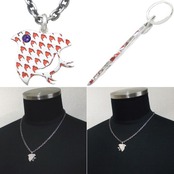 和風の千鳥柄の中にセラミックレッドの千鳥格子を掛け合わせたペンダント。しかも目の部分には誕生石をセッティング。バースデーストーンの他シックなブラック、気分も運気も上げてくれそうなイエローのジルコニアも用意、誕生月に拘らずマイカラーでも選んでほしい。