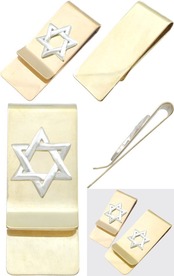 ダビデの星ヘキサグラムモーチフを2種類の仕上げで、さらにマネークリップはスタンダートとスリムの2種類のボディを複数用意。シルバーとブラスどちらも使い込む程に素材の深みと味が増す素材感も魅力。