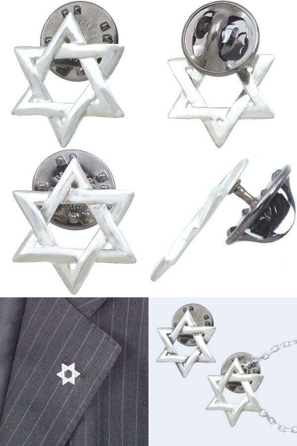 ダビデの星ヘキサグラムをナチュラルな立体感の山型に仕上げたピンバッジ。落ち着いた燻しとすっきりとしたホワイトの異なる2カラーで個性を強調。