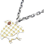 和風の千鳥柄の中にセラミックゴールドの千鳥格子を掛け合わせたペンダント。しかも目の部分には誕生石をセッティング。バースデーストーンの他シックなブラック、気分も運気も上げてくれそうなイエローのジルコニアも用意、誕生月に拘らずマイカラーでも選んでほしい。