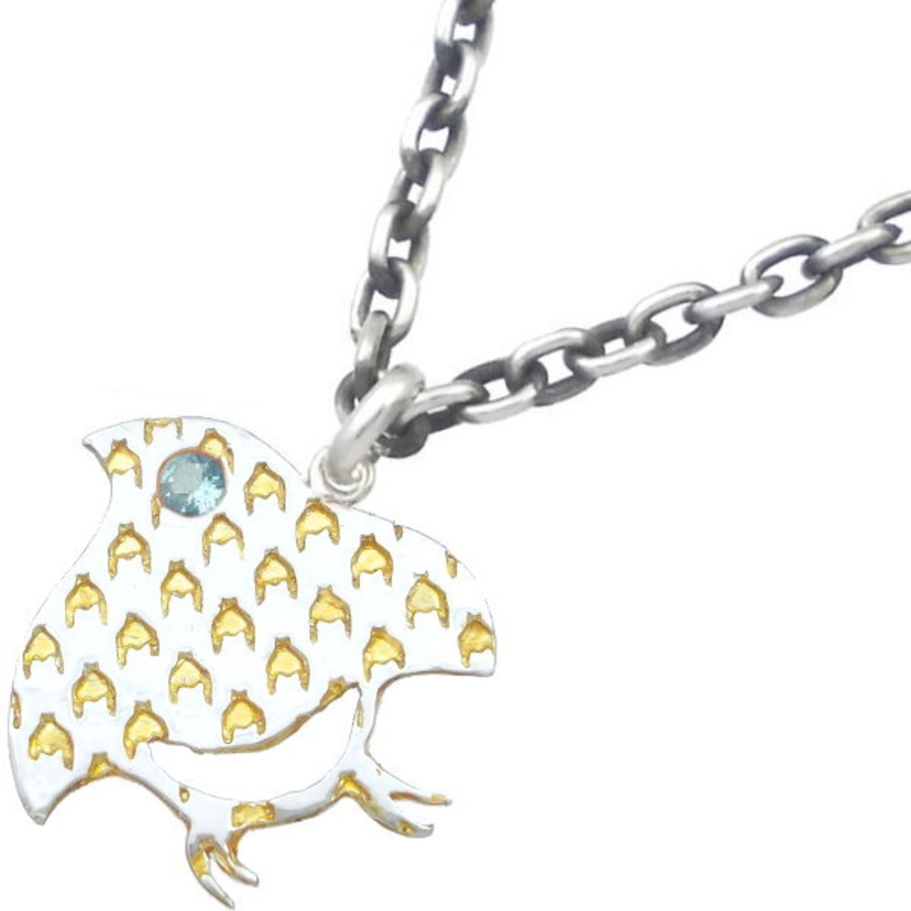 和風の千鳥柄の中にセラミックゴールドの千鳥格子を掛け合わせたペンダント。しかも目の部分には誕生石をセッティング。バースデーストーンの他シックなブラック、気分も運気も上げてくれそうなイエローのジルコニアも用意、誕生月に拘らずマイカラーでも選んでほしい。