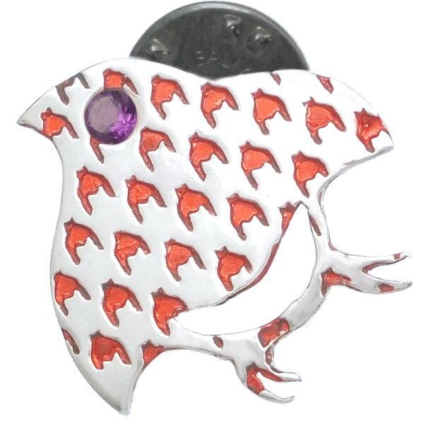 (2月)アメジスト レッド ダブル チドリ シルバーピンバッジ ピン 誕生石*ST-006