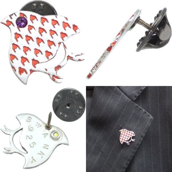 和風の千鳥柄の中にセラミックレッドの千鳥格子を掛け合わせたピンバッヂ。しかも目の部分には誕生石をセッティング。バースデーストーンの他シックなブラック、気分も運気も上げてくれそうなイエローのジルコニアも用意、誕生月に拘らずマイカラーでも選んでほしい。