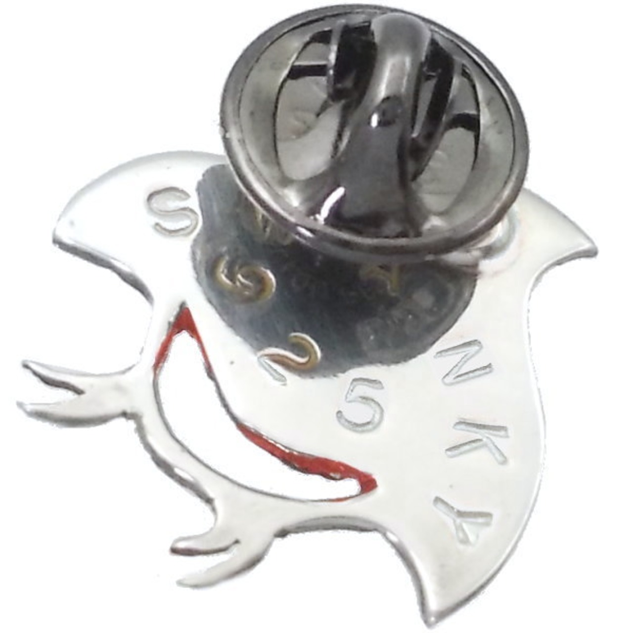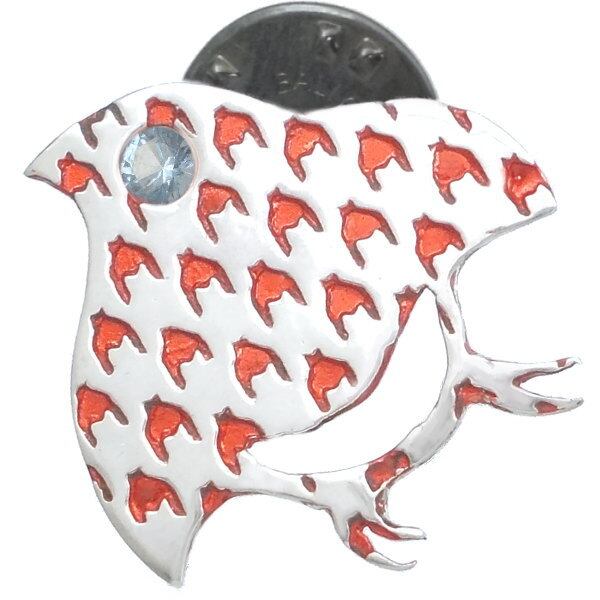 和風の千鳥柄の中にセラミックレッドの千鳥格子を掛け合わせたピンバッヂ。しかも目の部分には誕生石をセッティング。バースデーストーンの他シックなブラック、気分も運気も上げてくれそうなイエローのジルコニアも用意、誕生月に拘らずマイカラーでも選んでほしい。