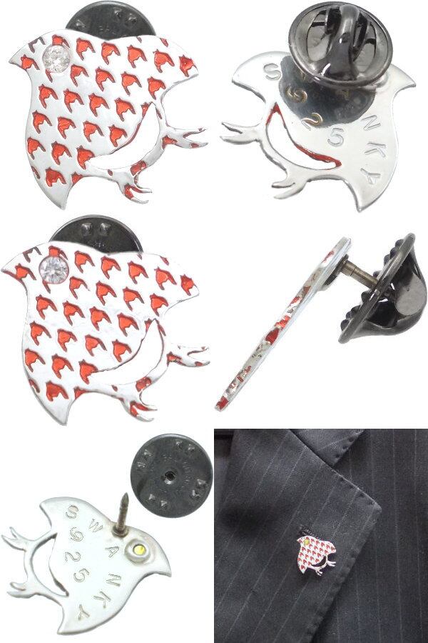和風の千鳥柄の中にセラミックレッドの千鳥格子を掛け合わせたピンバッヂ。しかも目の部分には誕生石をセッティング。バースデーストーンの他シックなブラック、気分も運気も上げてくれそうなイエローのジルコニアも用意、誕生月に拘らずマイカラーでも選んでほしい。