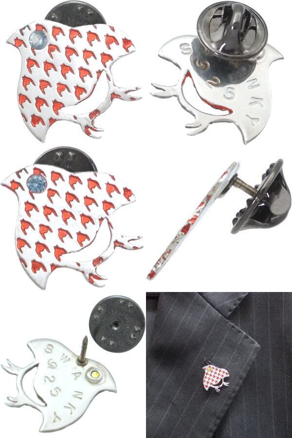 和風の千鳥柄の中にセラミックレッドの千鳥格子を掛け合わせたピンバッヂ。しかも目の部分には誕生石をセッティング。バースデーストーンの他シックなブラック、気分も運気も上げてくれそうなイエローのジルコニアも用意、誕生月に拘らずマイカラーでも選んでほしい。