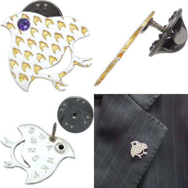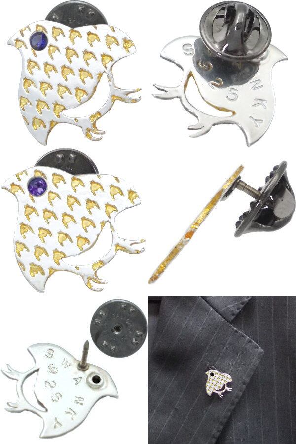 和風の千鳥柄の中にセラミックゴールドの千鳥格子を掛け合わせたピンバッヂ。しかも目の部分には誕生石をセッティング。バースデーストーンの他シックなブラック、気分も運気も上げてくれそうなイエローのジルコニアも用意、誕生月に拘らずマイカラーでも選んでほしい。