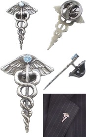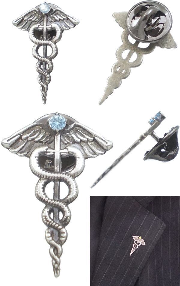 神々の使者として現代においては交通、商業のシンボル、アメリカ軍では医療のシンボル。神話の時をへてなお色褪せいないデザインの杖に誕生石をセッティングした神々しいピンズ。