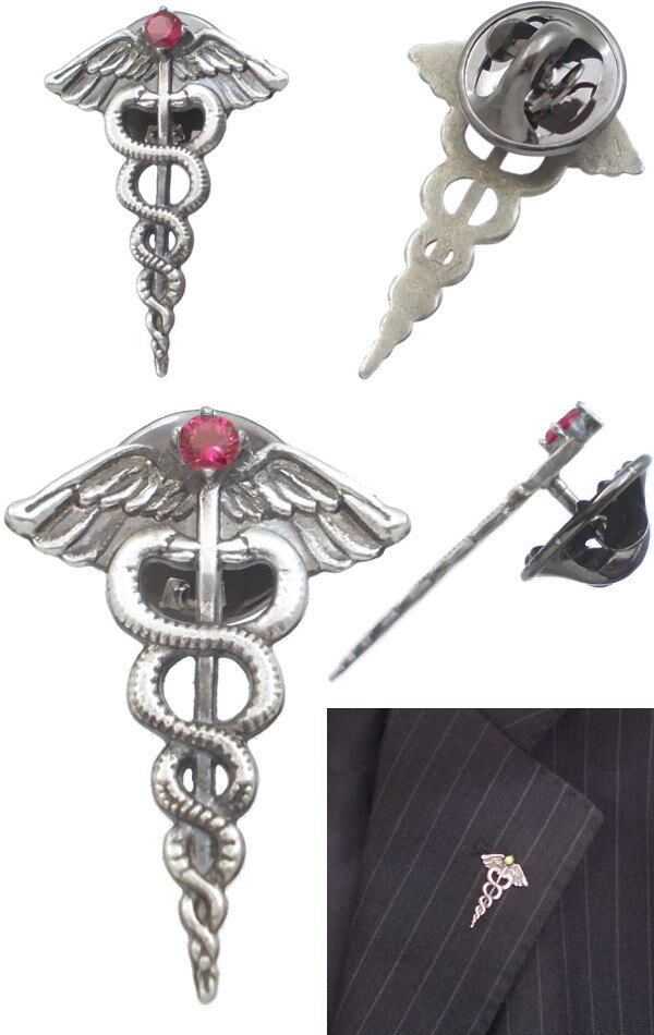 神々の使者として現代においては交通、商業のシンボル、アメリカ軍では医療のシンボル。神話の時をへてなお色褪せいないデザインの杖に誕生石をセッティングした神々しいピンズ。