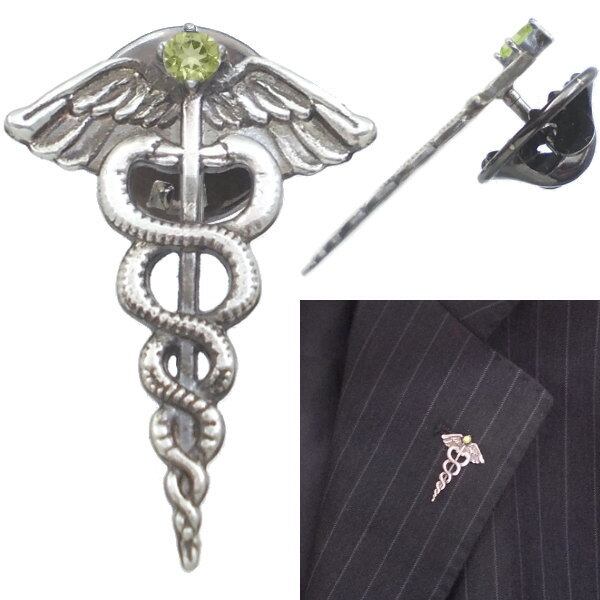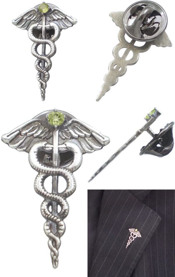 (8月)ペリドット ケーリュケイオン シルバーピンバッジ ピンズ 誕生石*BK-1131
