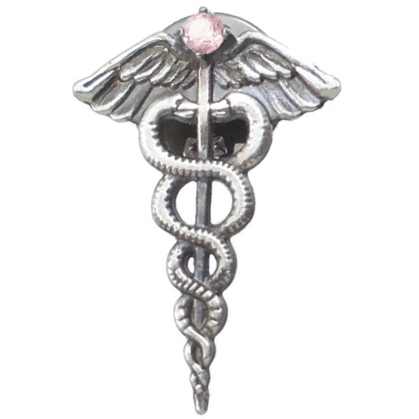 神々の使者として現代においては交通、商業のシンボル、アメリカ軍では医療のシンボル。神話の時をへてなお色褪せいないデザインの杖に誕生石をセッティングした神々しいピンズ。