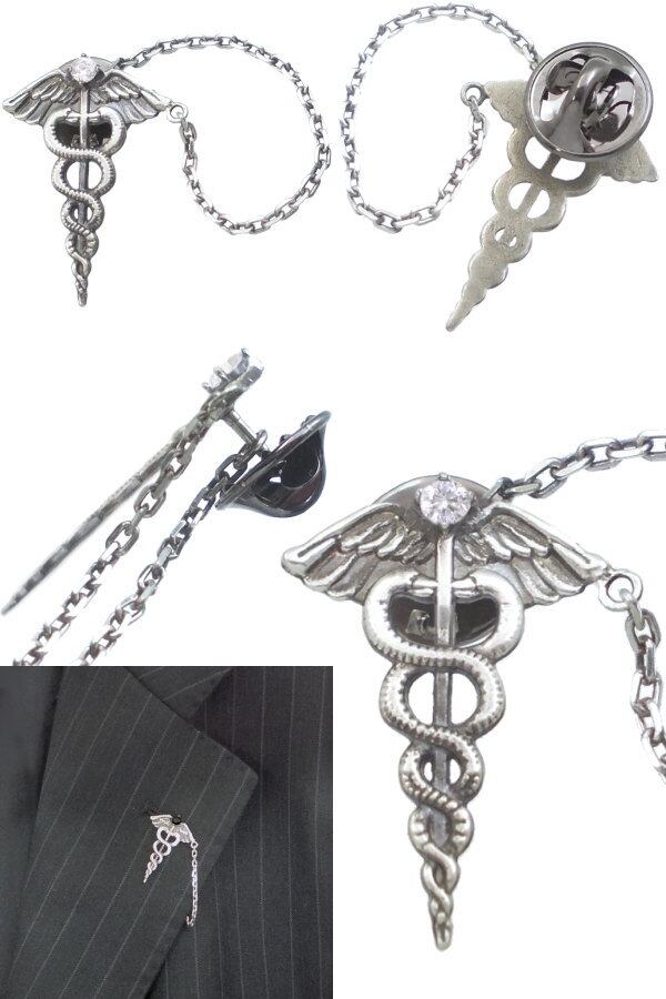 (4月)ジルコニア ケーリュケイオン チェーン シルバーピンバッジ ピンズ 誕生石*BK-1132