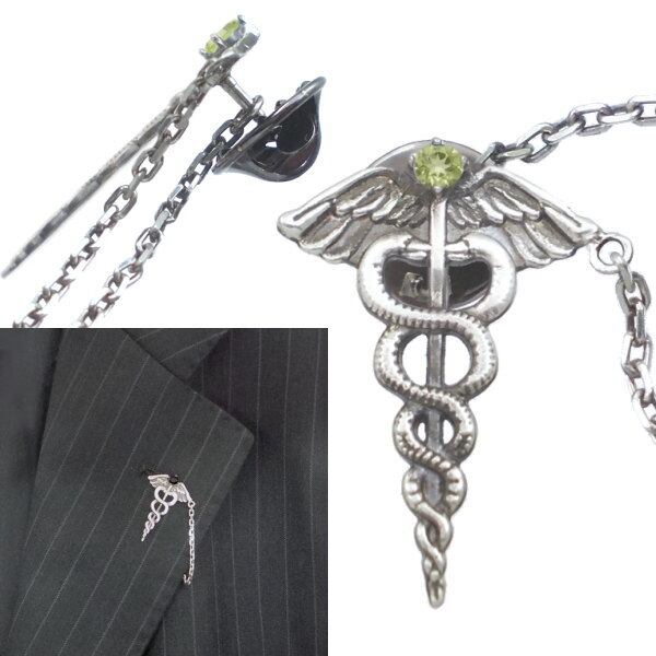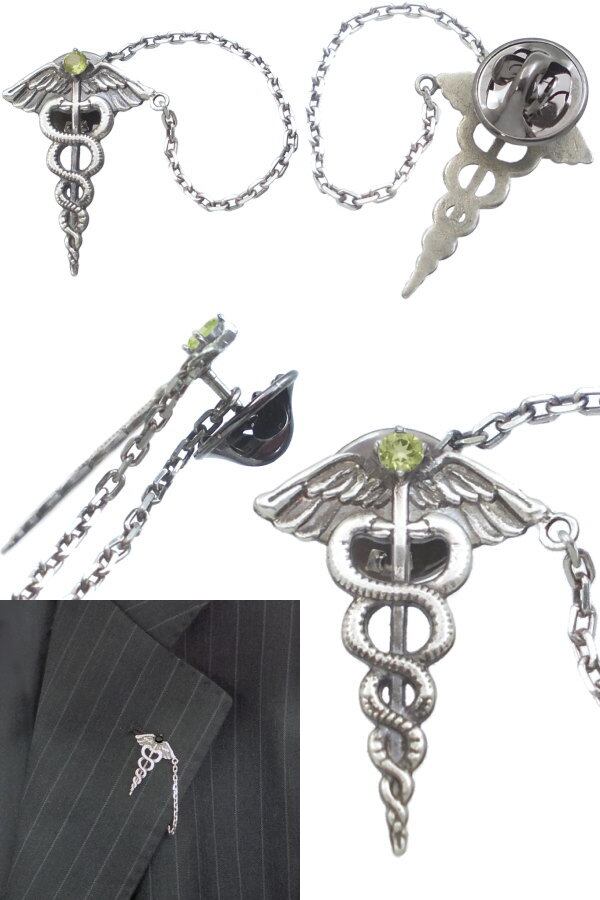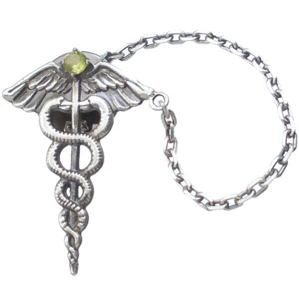 (8月)ペリドット ケーリュケイオン チェーン シルバーピンバッジ ピンズ 誕生石*BK-1132
