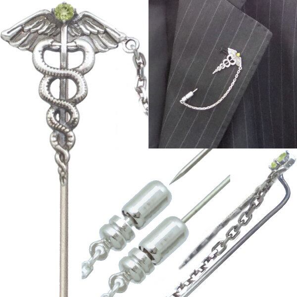 ★ギリシャ神話の使者ヘルメスの杖カドゥケウスとバースデーストーンのラペルピン。