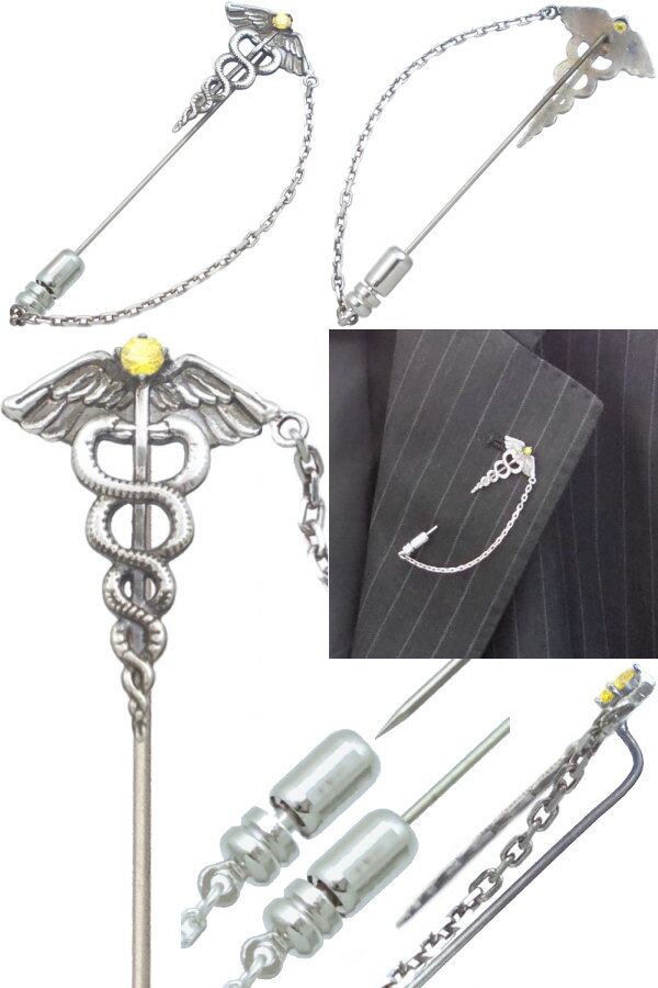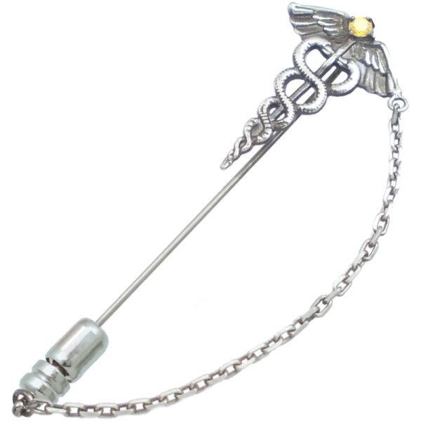 ★ギリシャ神話の使者ヘルメスの杖カドゥケウスとバースデーストーンのラペルピン。