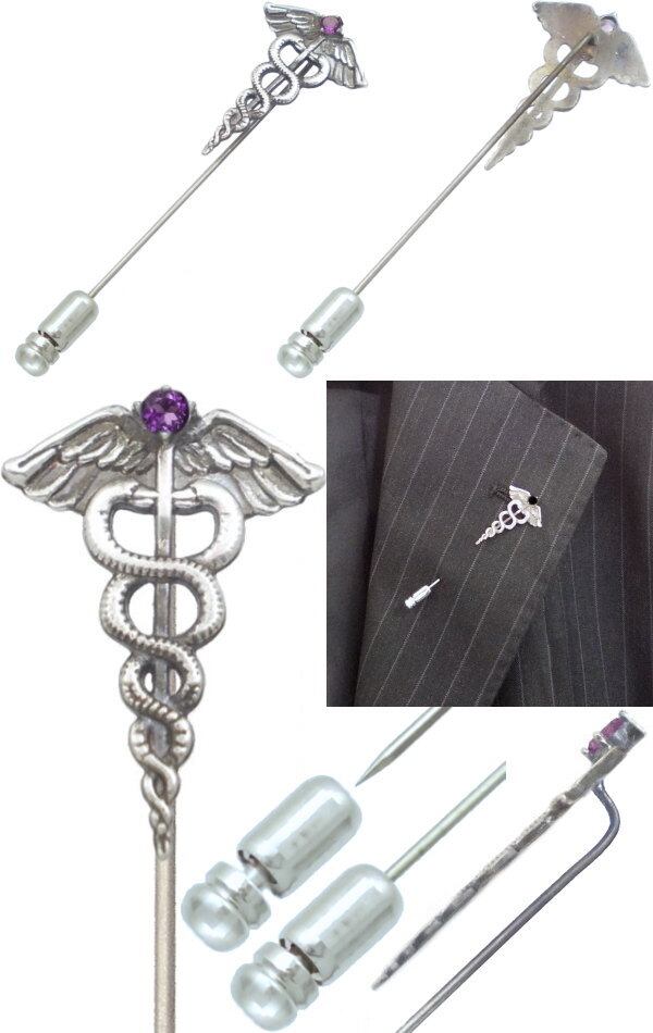 ★ギリシャ神話の使者ヘルメスの杖カドゥケウスとバースデーストーンのラペルピン。