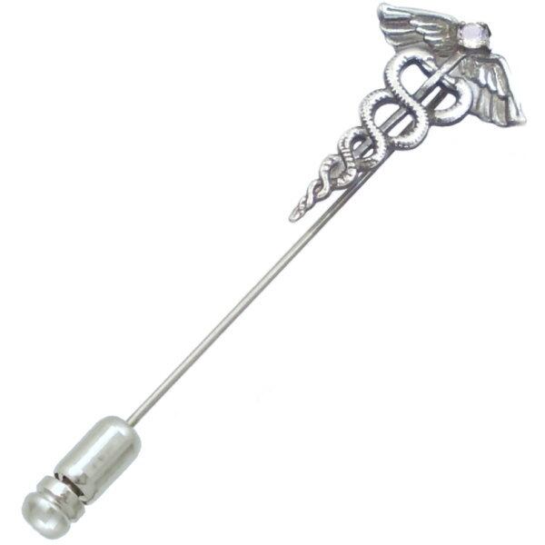 ★ギリシャ神話の使者ヘルメスの杖カドゥケウスとバースデーストーンのラペルピン。