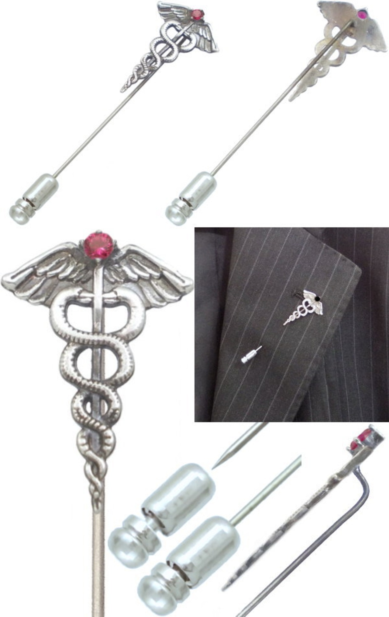 ★ギリシャ神話の使者ヘルメスの杖カドゥケウスとバースデーストーンのラペルピン。