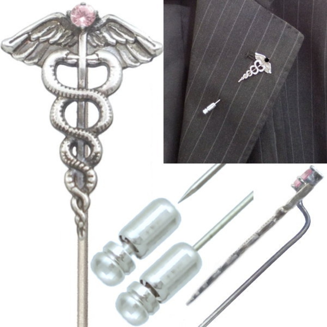 ★ギリシャ神話の使者ヘルメスの杖カドゥケウスとバースデーストーンのラペルピン。