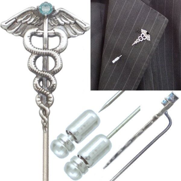 ★ギリシャ神話の使者ヘルメスの杖カドゥケウスとバースデーストーンのラペルピン。